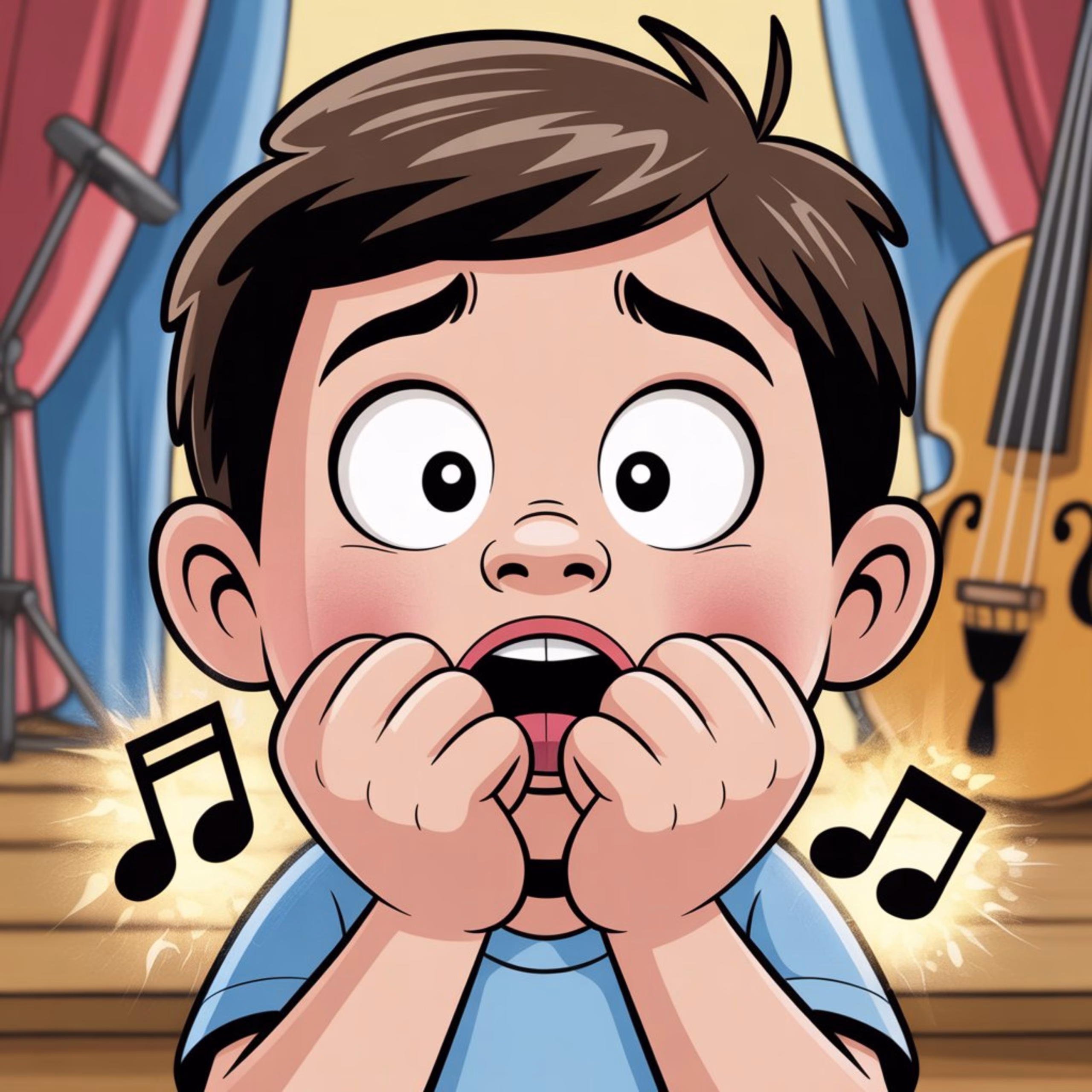 Maestro Magnifico’s office looks like a musical instrument factory exploded during a tornado inside a jazz club. When Oliver bounces into the bass drum, the Maestro freezes. His eyes go wide. He grabs a tuning fork and discovers something extraordinary. Oliver’s hiccups are in B flat. Perfect B flat. They are channeling Beethoven’s Fifth Symphony. Oliver is not broken. He is musical. And today is the talent show.